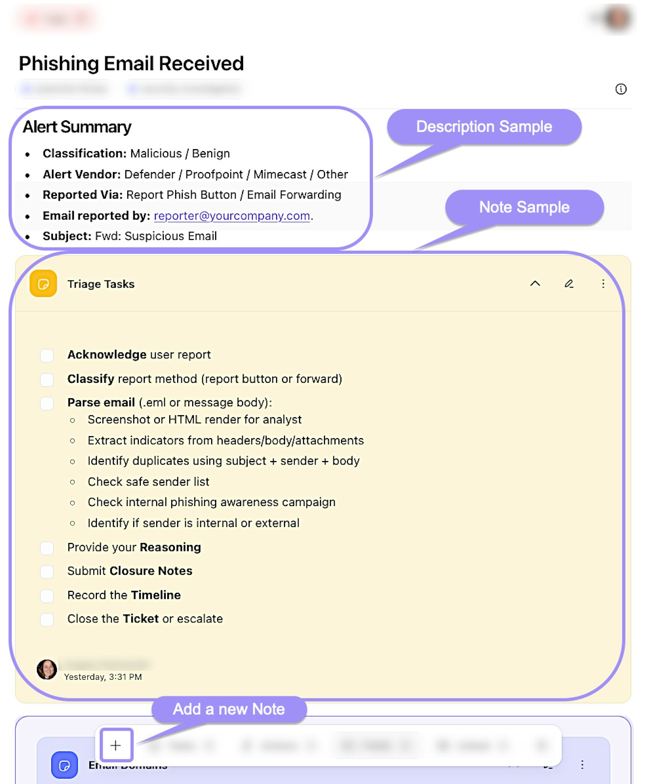 Description: A rich-text field supporting Markdown, allowing detailed documentation of the case's context, history, and actions taken.