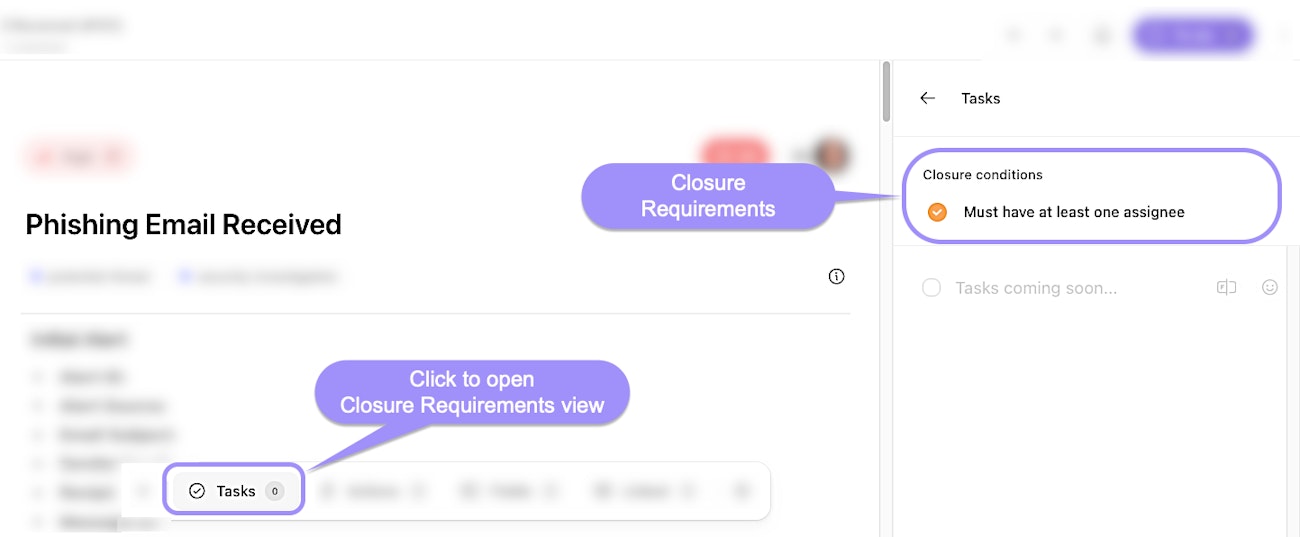 Closure requirements: Conditions that must be met before a case can be closed, ensuring that all necessary actions and reviews are completed.