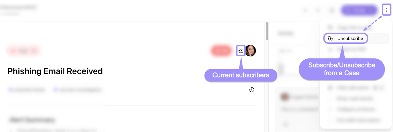 Any user viewing a case can choose to subscribe. This ensures they receive alerts within the UI whenever important changes occur. Multiple users can subscribe to a case, and they can unsubscribe when updates are no longer needed.