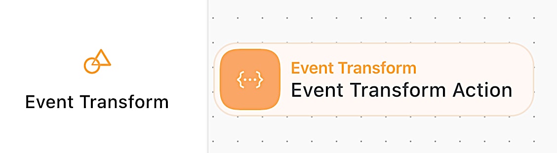Visual of the Event Transform action. It is identifiable as an orange tile on the storyboard.