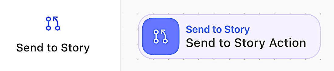 Visual of the Send to Story action. It is identifiable as a dark blue tile on the storyboard.