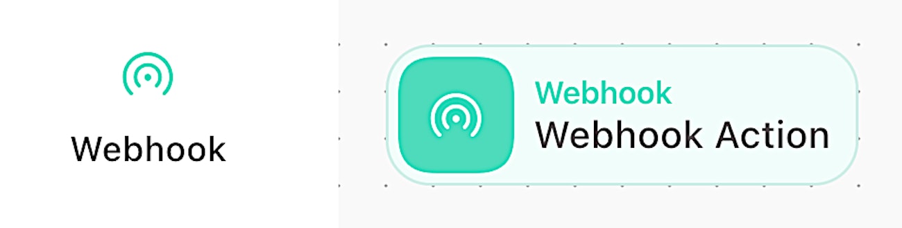 Visual of the Webhook action. It is identifiable as a teal tile on the storyboard.