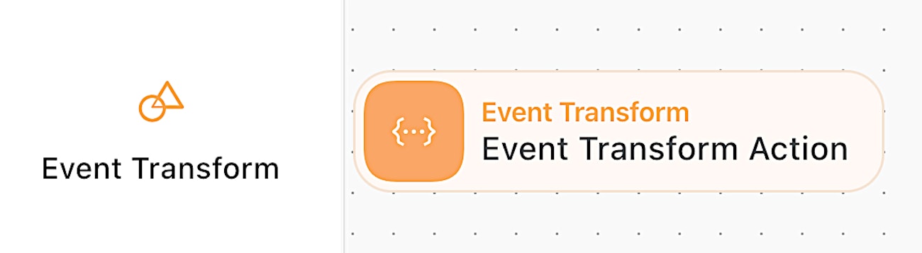 Visual of the Event Transform action. It is identifiable as an orange tile on the storyboard.