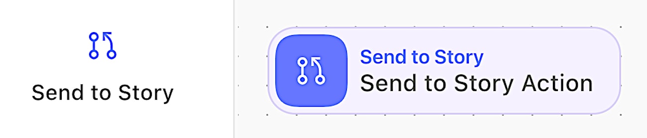 Visual of the Send to Story action. It is identifiable as a dark blue tile on the storyboard.
