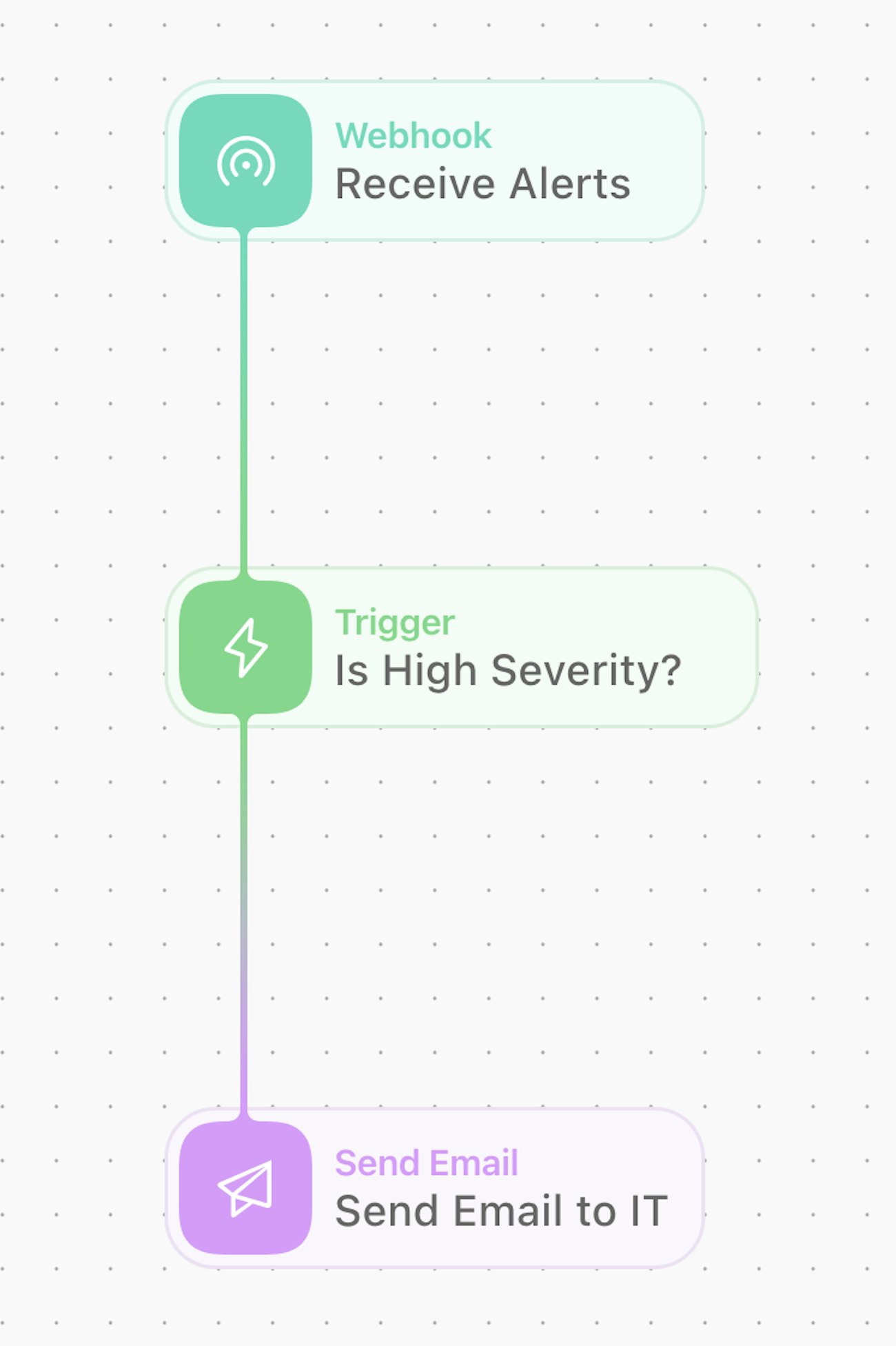 Each action builds upon the one before it, creating a self-contained workflow that runs automatically whenever the first component is initiated. This chain is what makes Tines' stories both powerful and easy to reason through. Every story tells a logical, visual “story” of your automation or agent.